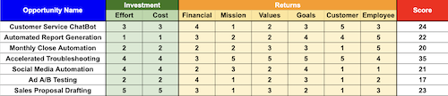 More importantly, we create a prioritization framework that goes beyond financial metrics. This framework evaluates each opportunity based on its estimated impact, alignment with your values, and contribution to your strategic goals—ensuring your AI initiatives serve both your bottom line and your mission.